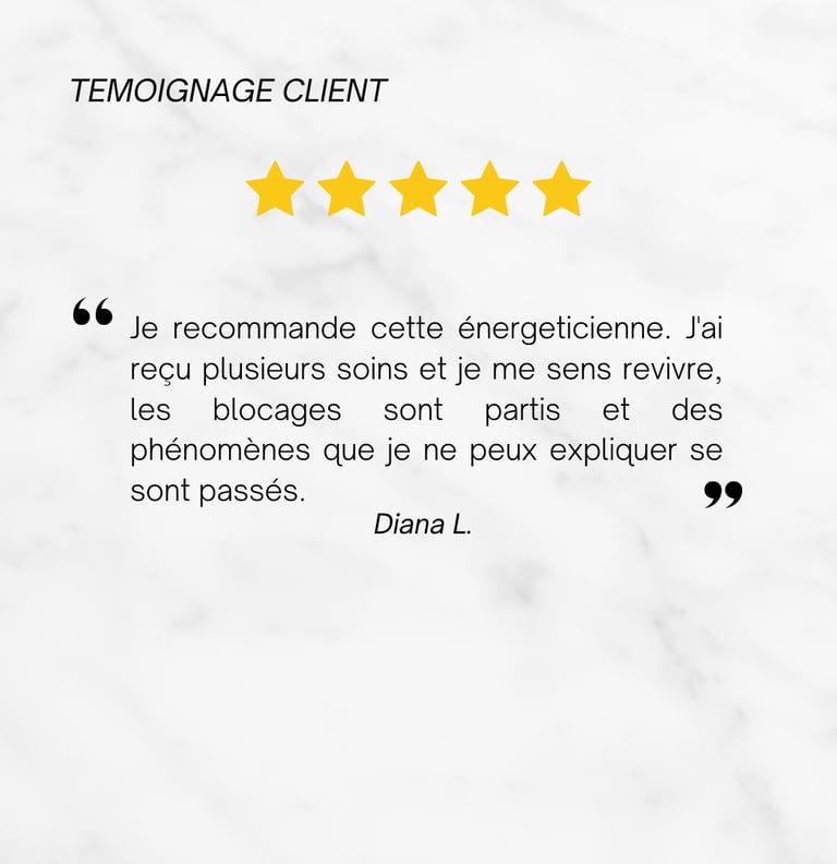 Les séances peuvent inclure la rééquilibration des centres énergétiques, la libération des blocages émotionnels, messages de vos guides ou défunts.
